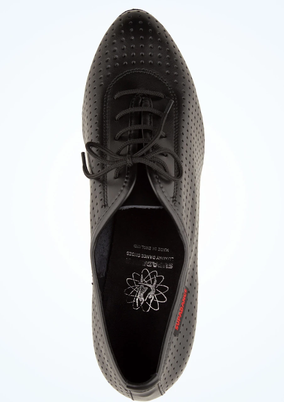 The perfect ballroom shoe for teaching and pratice from Supadance. A padded and cushioned insole makes these elegant shoes super comfy whilst the black perforated leather is stylish and chic. The adjustable lace up design and high quality soft leather provides extra comfort for you to dance all day.
