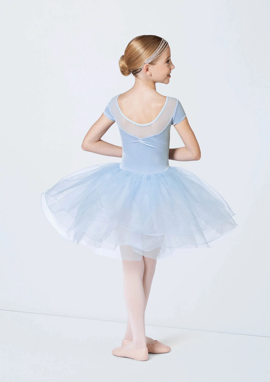 -Degas tutu consists of glitter mist tulle over curly hem tricot