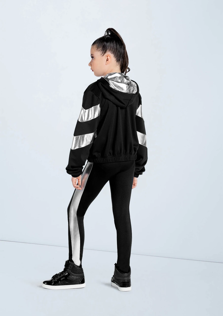 -Metallic chevron insets and lined hood