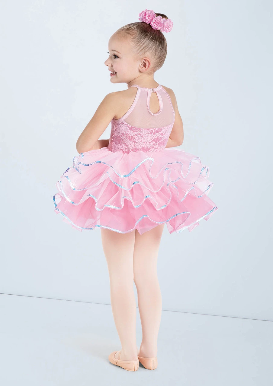 -Layered tricot tutu with iridescent sequin trim