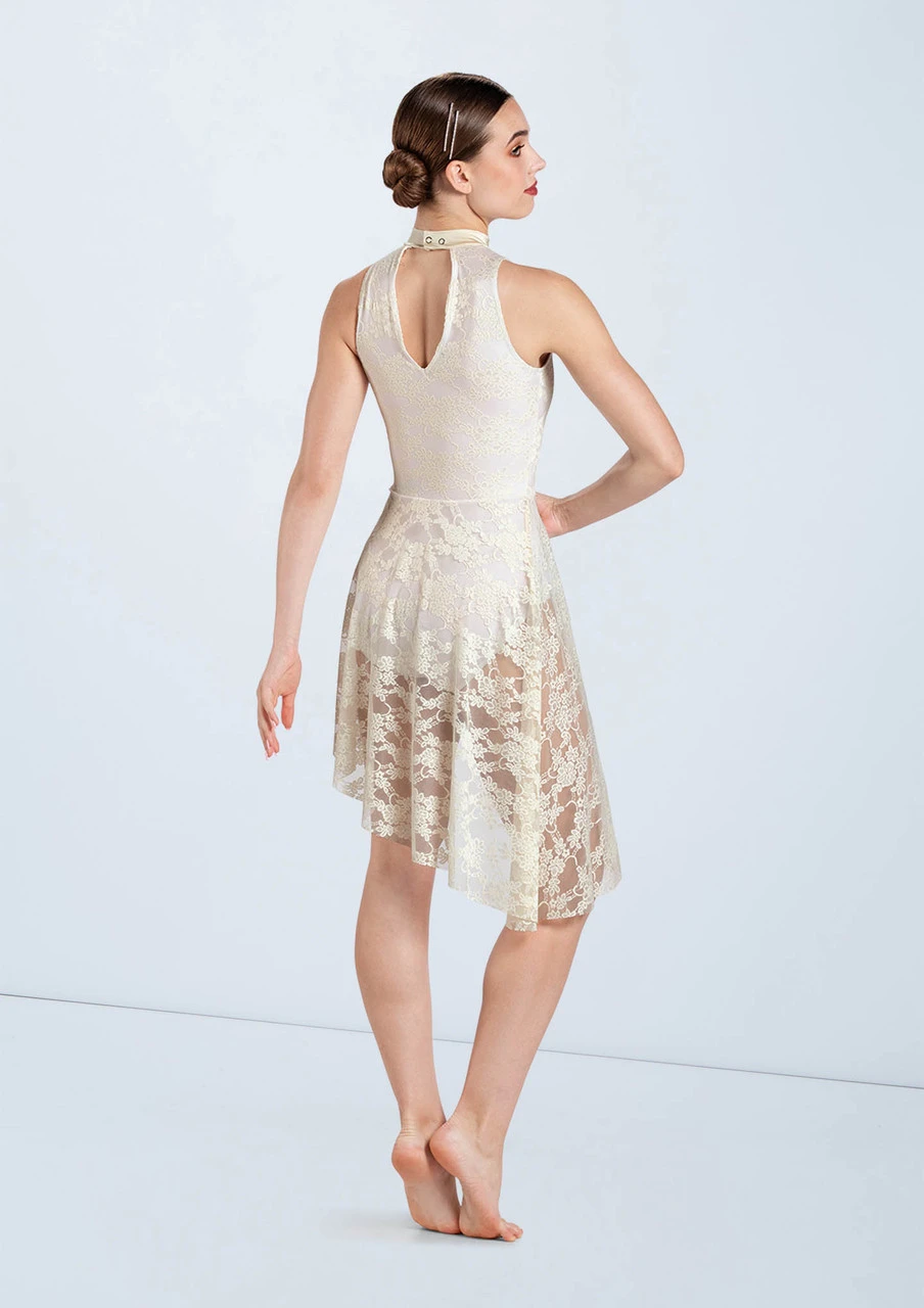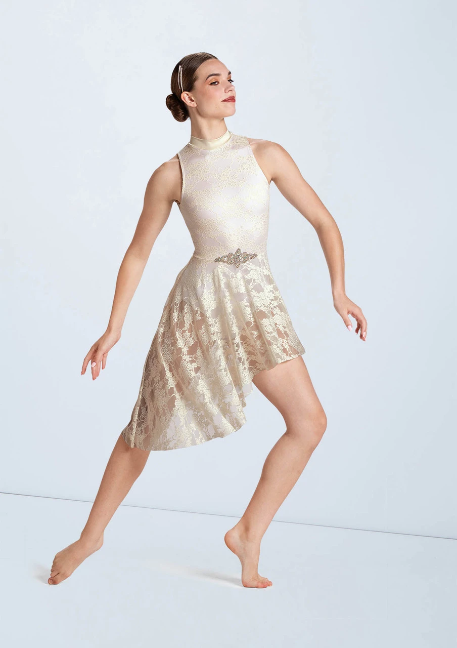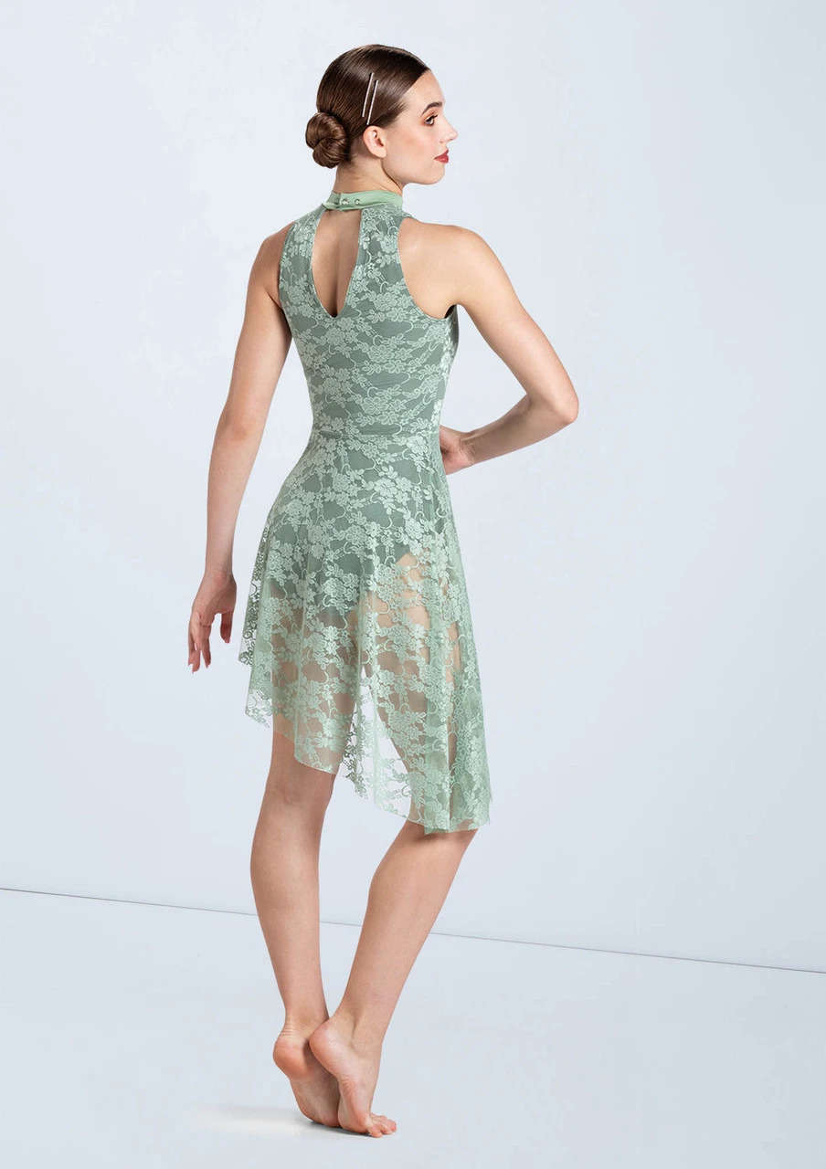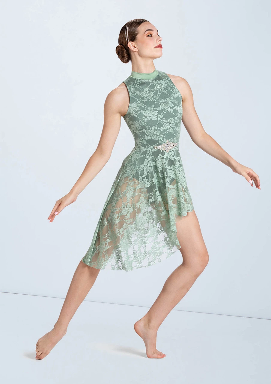 -Dress features floral stretch lace over 4-way stretch shiny spandex leotard