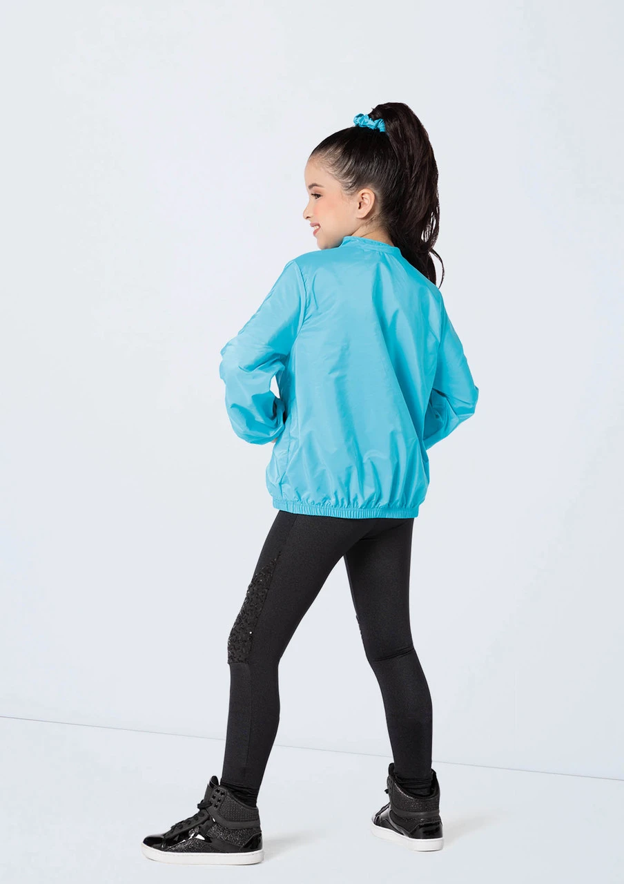 -Two piece, includes windbreaker and unitard