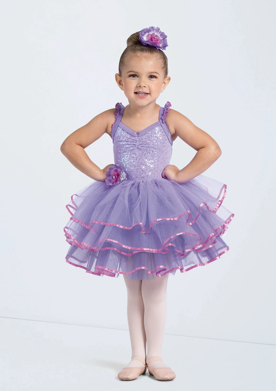 -Tiered tulle and tricot tutu with satin ribbon trim